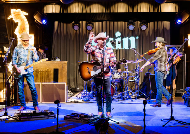 This Rodeo Kickoff Holiday Party at The Thompson Hotel delivered high style with a Texas twist. Lounge vignettes featured leather sofas and cowhide rugs, while life-size cowboy and cowgirl cutouts added a layer of playful charm. Peach-toned florals softened the Western palette, creating a warm and elevated atmosphere. The true showstopper — a six-foot-tall disco horse perched above the bar, draped in cascading blooms like a floral saddle — set the tone for a celebration that was both design-forward and unapologetically fun.
